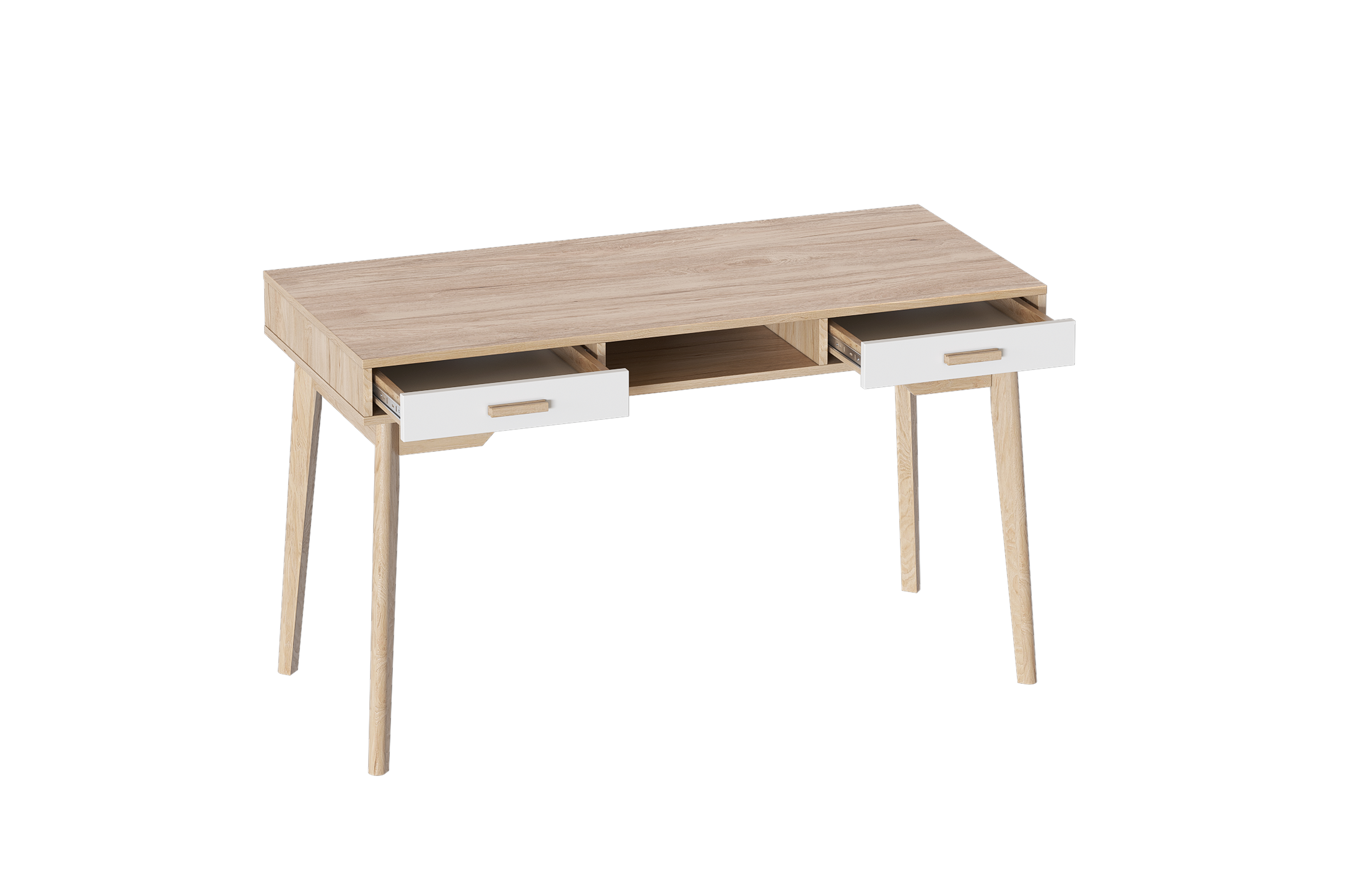 Два ящика полного выдвижения под столешницей и ниша идеально подойдут для хранения письменных принадлежностей, блокнотов и документов.